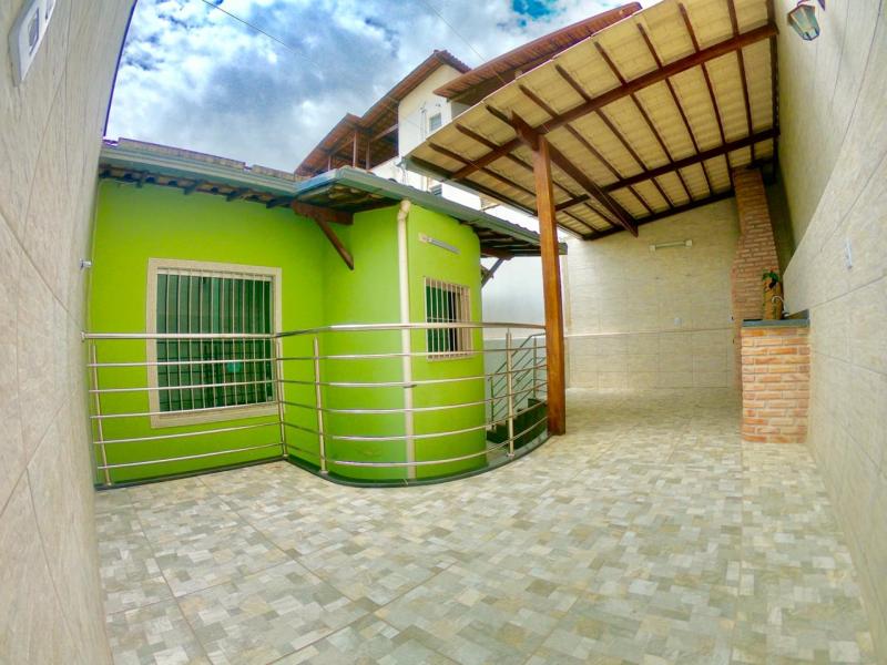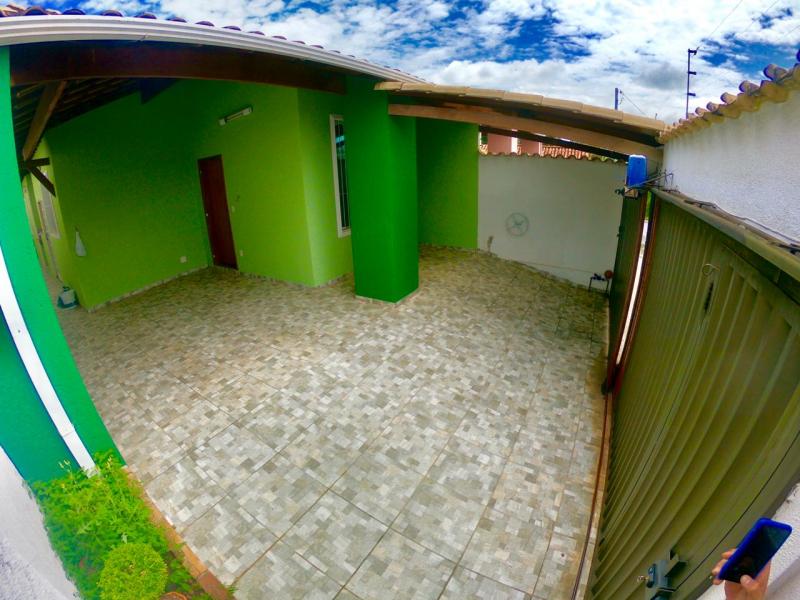 Casa plana, 3 quartos com armários, suíte, sala 2 ambientes, banho social, cozinha com armários, área de serviço, área gourmet com churrasqueira e fogão a lenha, 2 vagas paralelas cobertas. Habite-se