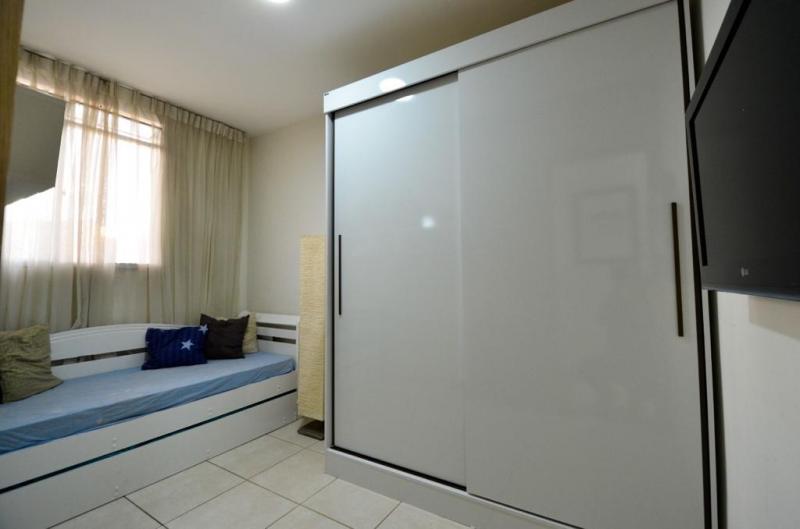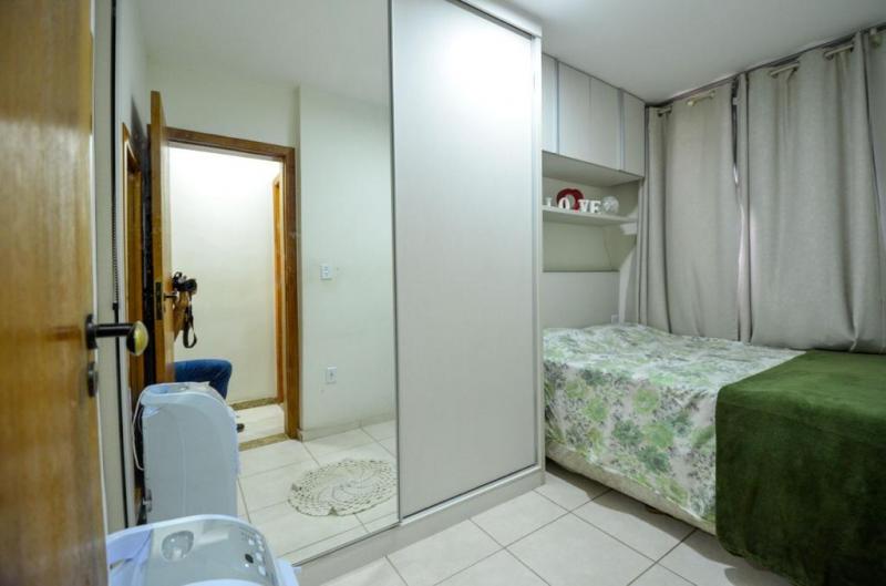 Casa 2 quartos sendo um com armário, banho social, sala, lavabo, cozinha com armários, área de serviço, área privativa, 1 vaga. Habitese