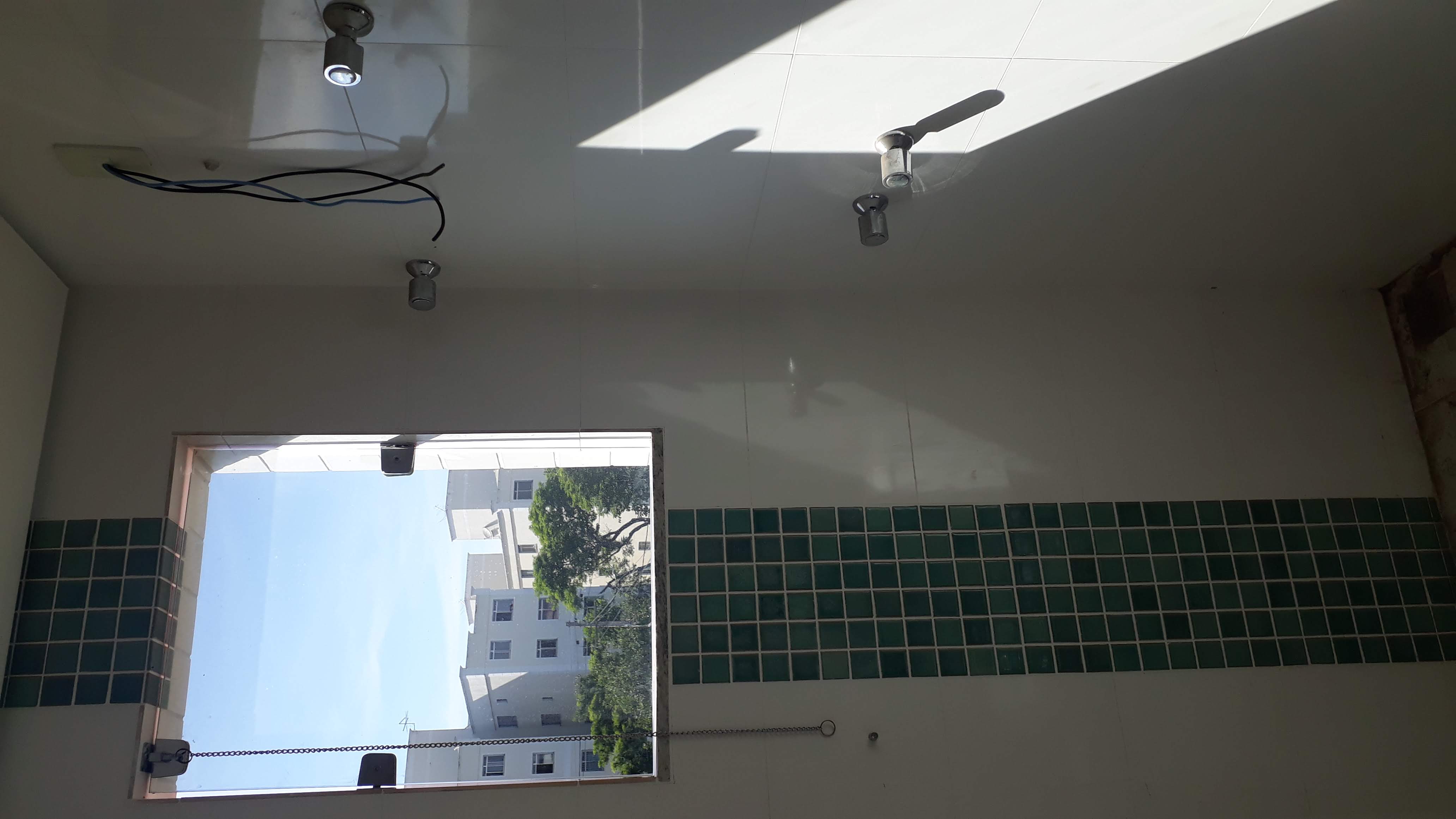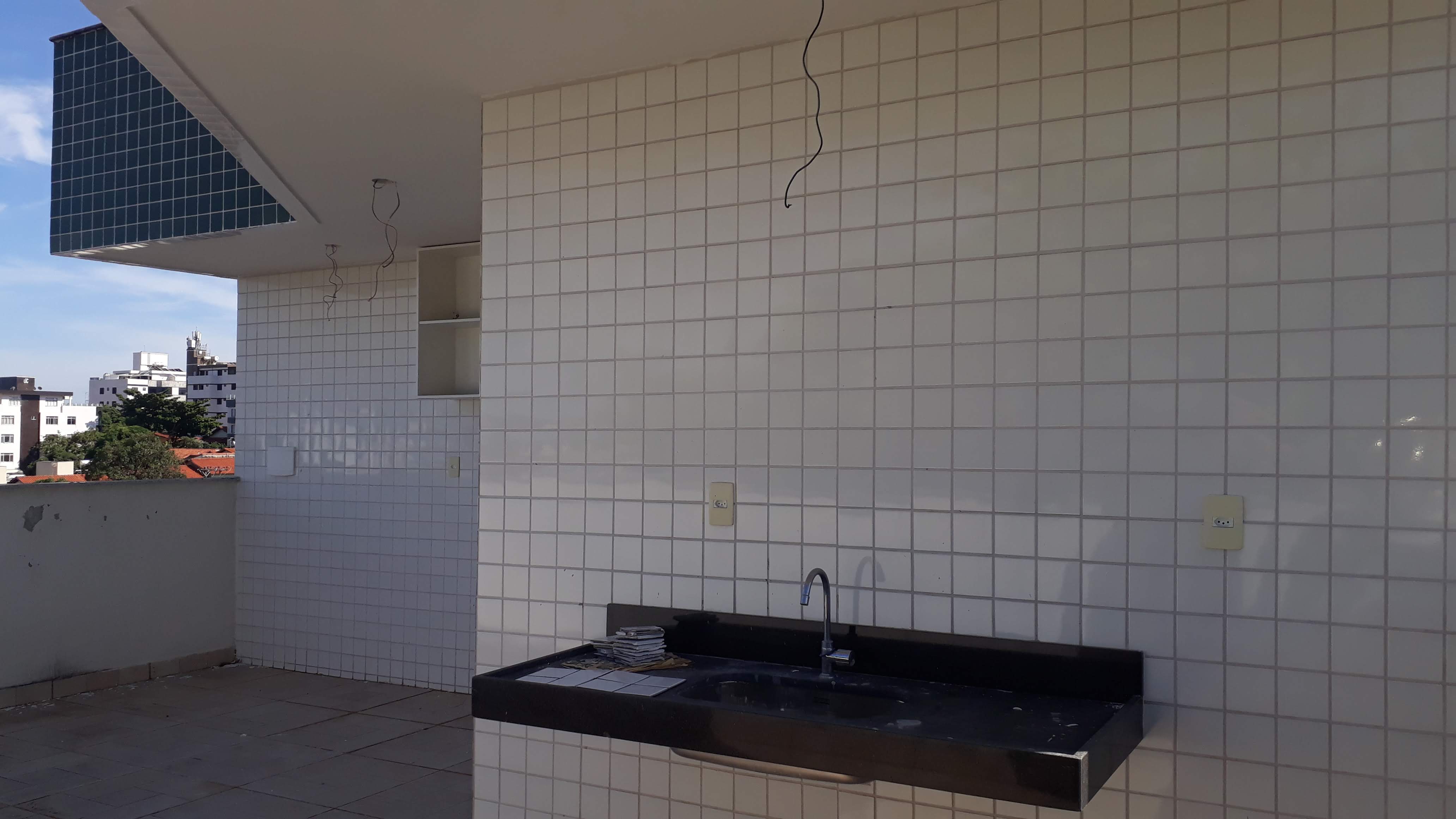 2º PAV. ESCADA EM GRANITO E CORRE MÃO EM AÇO INOX, SALA P/ 2 AMBIENTES, BANHO SOCIAL, ÁREA EXTERNA EM CERÂMICA C/ ÁREA DE SERVIÇO C/ TANQUE E ÁREA P/ CHURRASQUEIRA C/ PIA E BANCADA EM GRANITO.
