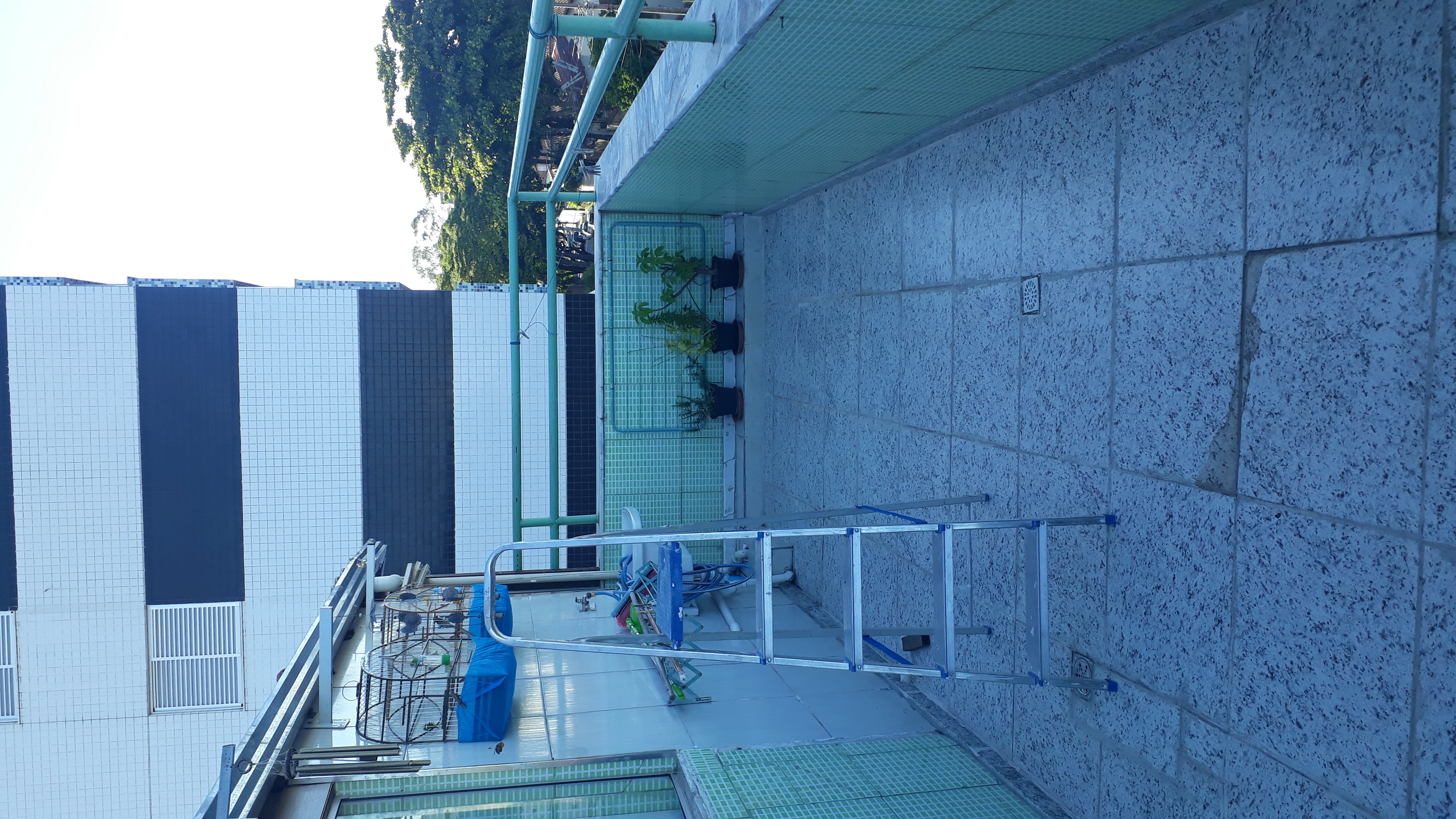 2º PAV. ESCADA EM GRANITO E CORRE MÃO EM AÇO INOX, SALA P/ 2 AMBIENTES, BANHO SOCIAL, ÁREA EXTERNA EM CERÂMICA C/ ÁREA DE SERVIÇO C/ TANQUE E ÁREA P/ CHURRASQUEIRA C/ PIA E BANCADA EM GRANITO.